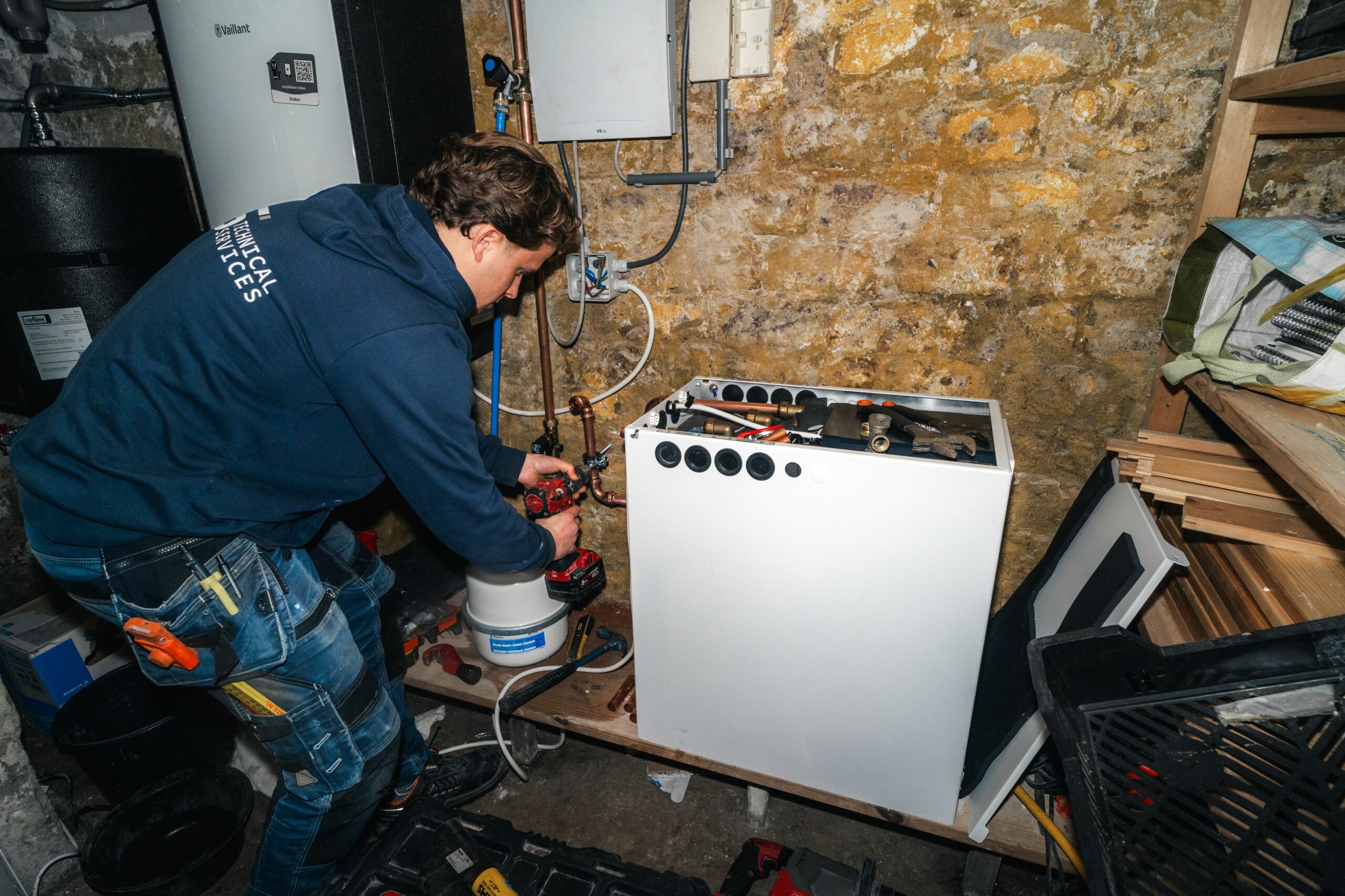 De volgende stap was het vinden van een geschikte boiler. Bij de klant was geen plek voor een reguliere boiler. Vandaar dat we hebben gekozen voor een compacter alternatief: een thermische batterij. Onze keuze viel op de FlexTherm Eco, die energiezuinig is en vele malen kleiner dan een reguliere boiler.