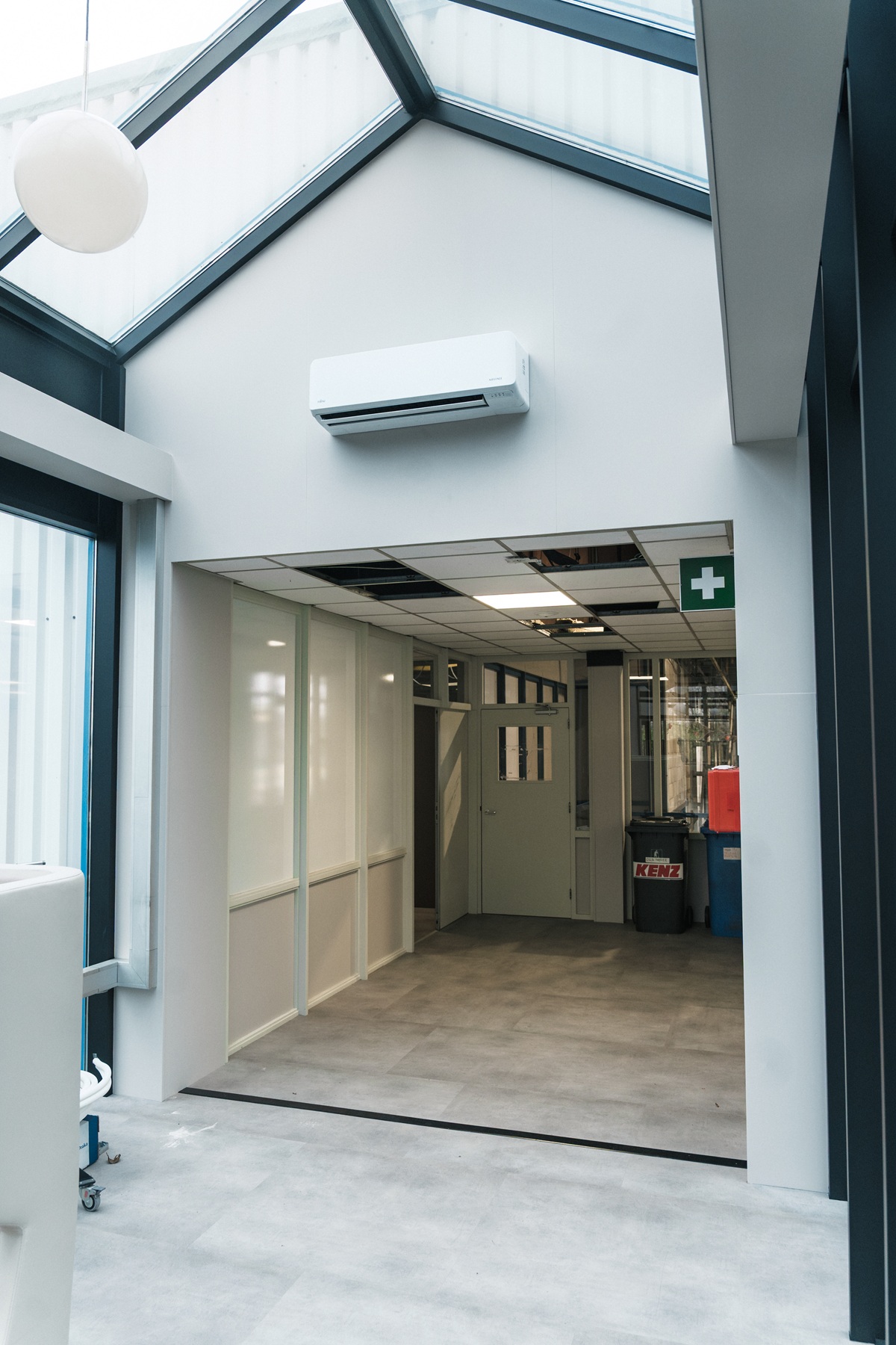 In totaal zijn vijf nieuwe airconditioningunits geplaatst op verschillende plekken binnen het gebouw. Daarnaast is een bestaande airco-installatie, die eerder in gebruik was bij de finance-afdeling, verplaatst naar het magazijn.